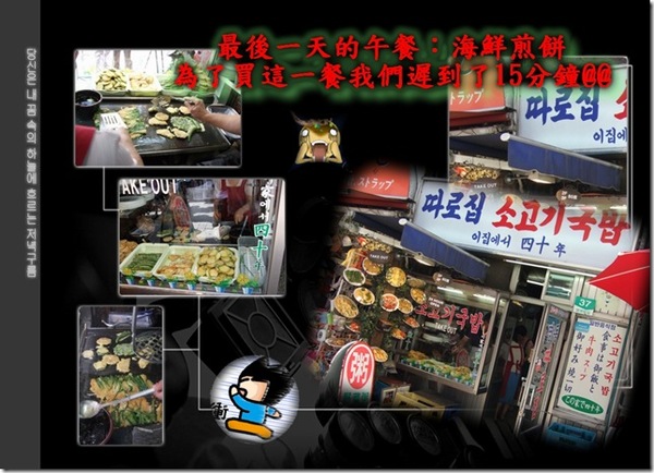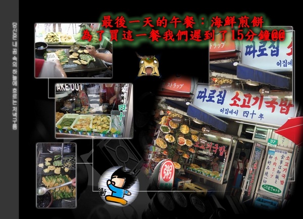當采賢不放棄此行一定要嚐到海鮮煎餅,甚至又拿出台幣到當地有提供外幣兌換的報攤換韓幣時,我已經呈現一種假死狀態,此刻就算有人拿刀架在我脖子上我也懶得跑了!