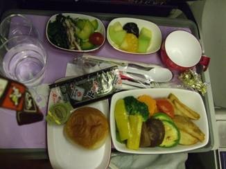 回程的素食機餐像樣多了,不過我實在沒啥胃口。中午的煎餅還在慢速消化中。