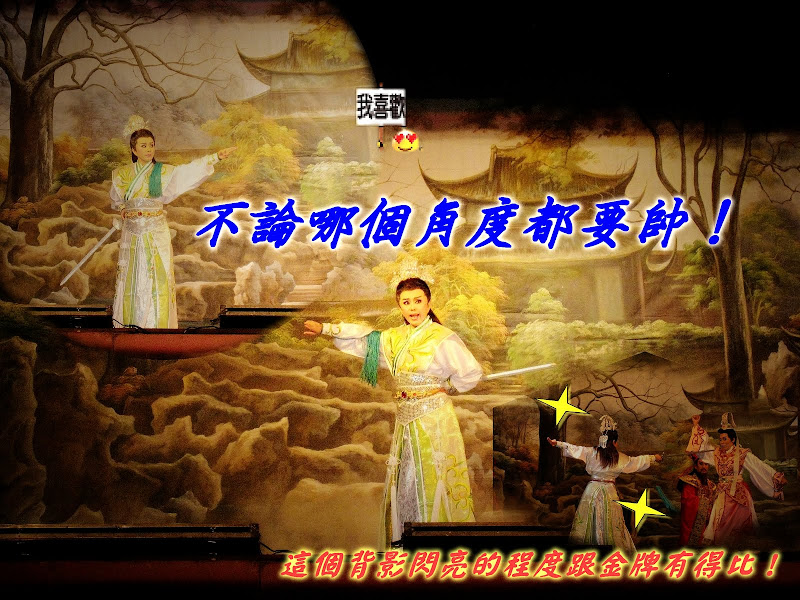 記得有在其他網友的介紹文中看過金蘭情還有一些獨家橋段(就是王子在跟四兩姑娘跑路期間有些小插曲),可能不定時地出現,本想說這齣戲時間不長又扣掉了扮仙及長官、團長致詞的時間,應該可以全攬無遺,不過當天看的內容還是跟我5月時看的如出一轍;儘管如此,這一場金蘭情無疑令人激賞,從硬體設備、觀眾素質還有最重要的就是我們的主角存曆王子今天電力全開,完全的迷人模式 Power On~~~~~