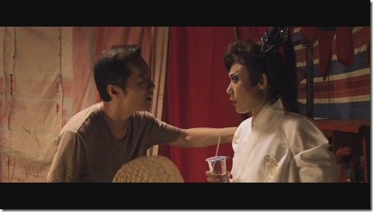 下戲後莊小米獨自對著妝台,若有所思的樣子,這時他的”過去”跟戲班料必有一段淵緣已經埋下了伏筆。