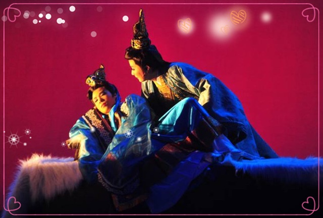 好不容易找到社教館,戲已經開演,館內人員還要我們這些晚到的人待戲演了一個段落才能入場…所以我整個錯過了被拱當鳳凰女王的董小生出場豔冠群芳的那一幕…折騰了半天,終於得以落座,兩位主角已經不打不相識了。